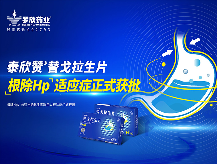 羅欣藥業(yè)創(chuàng)新藥替戈拉生片(商品名:泰欣贊?)新適應(yīng)癥“與適當(dāng)?shù)目股芈?lián)用以根除幽門螺桿菌”獲批上市